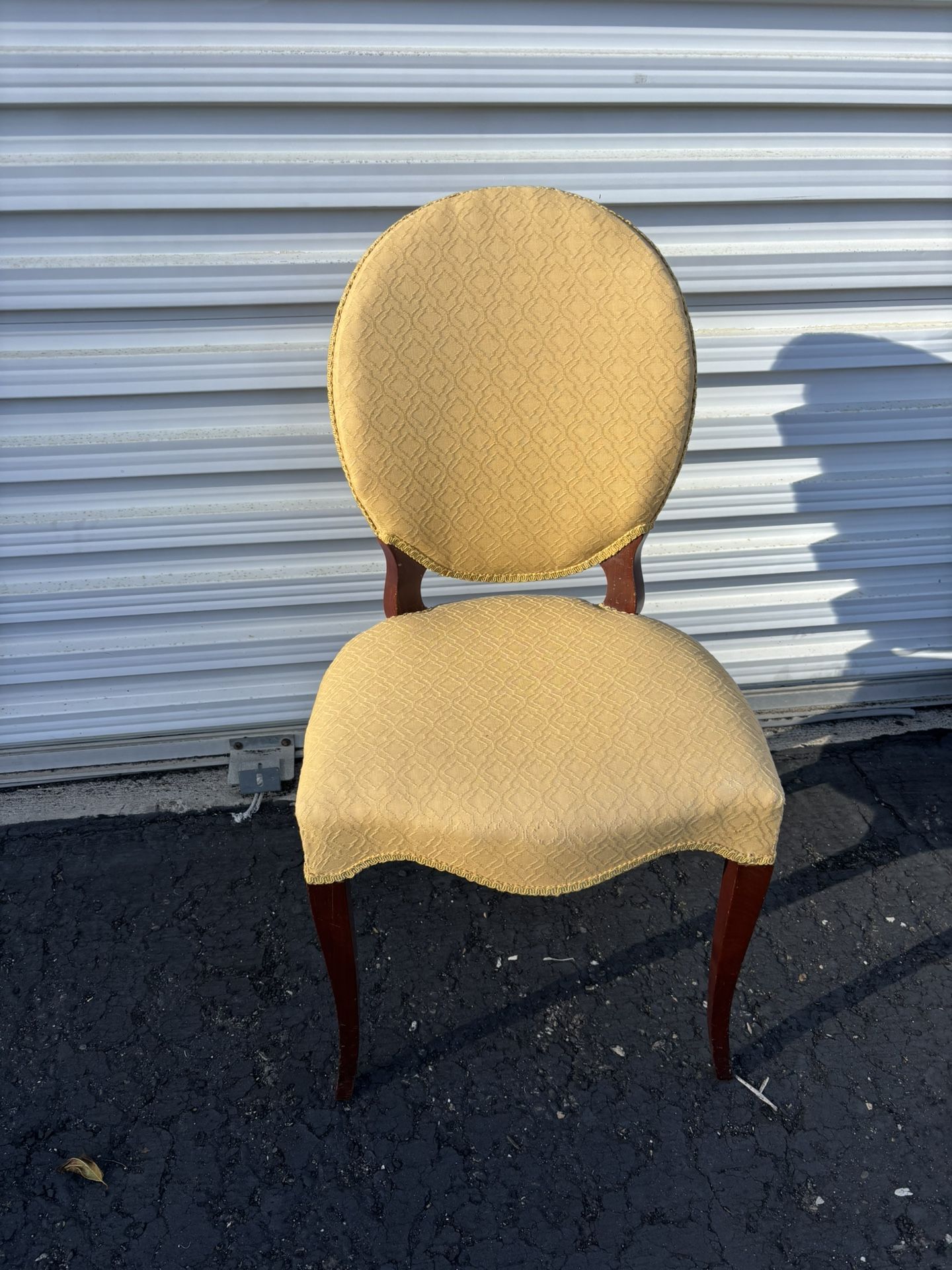 Golden fabric accent chair Used No rips or tears Textured fabric 18” wide 17” deep 35.5” tall Seat height at 18” Asking $80 obo Cash or Venmo Located in Grover Thanks for looking