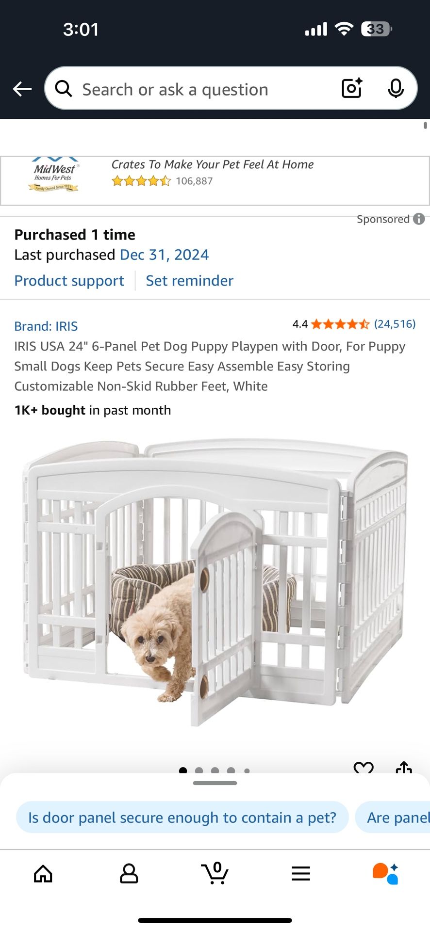 Puppy Playpen With Door $45