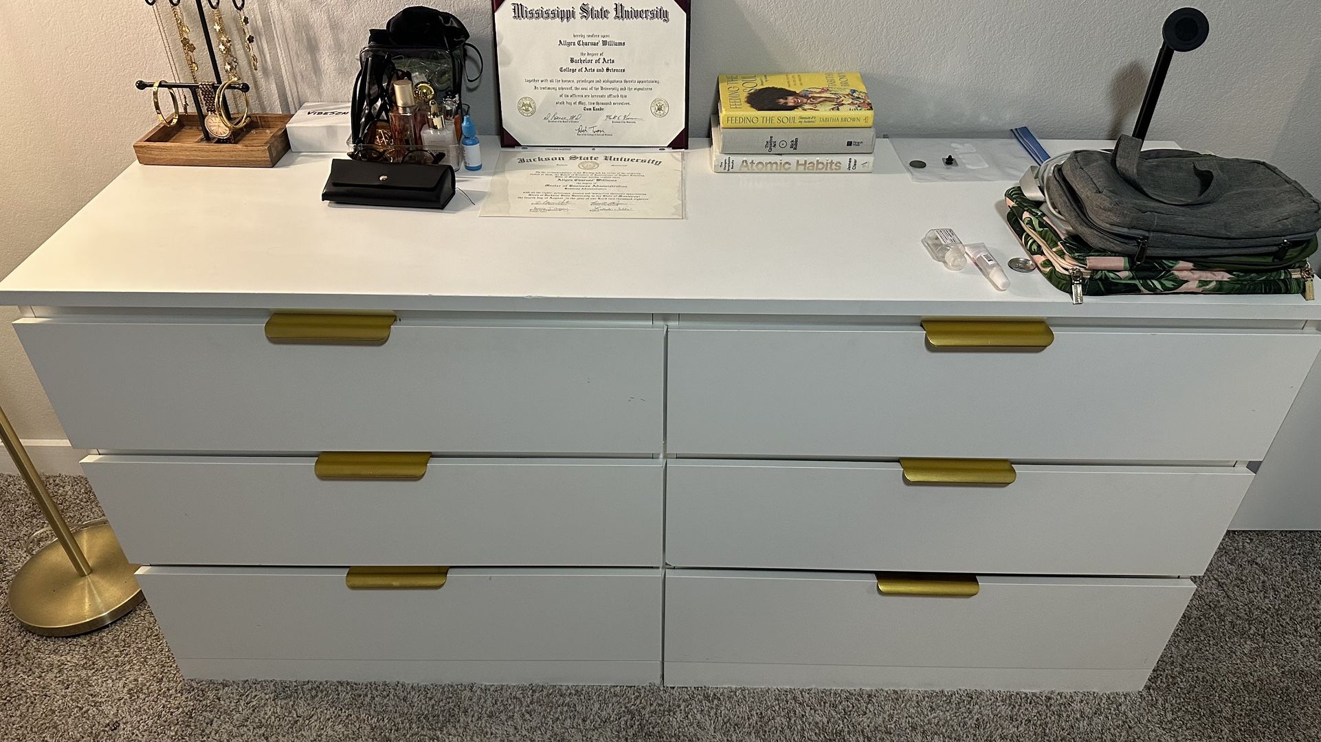 Chest of 6 drawers from IKEA, piece broken at very bottom, see picture