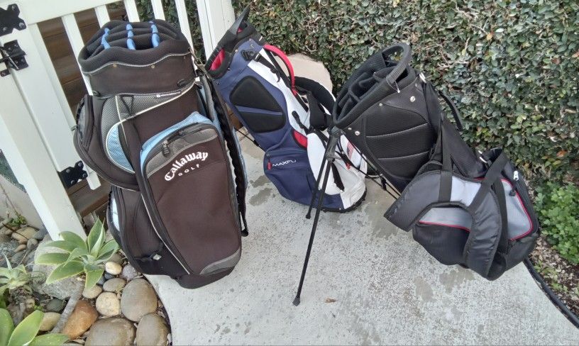 Callaway Cart bag $50, new Tour X stand bag $50, Maxfli stand bag $40
