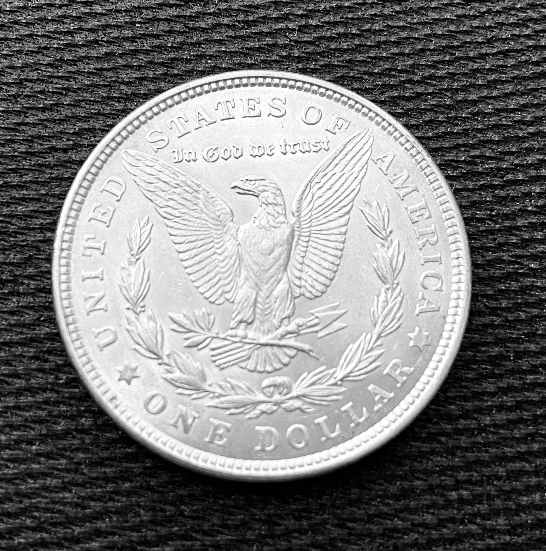 A genuine 1921 Morgan Silver Dollar. This large Silver Morgan dollar bears George T. Morgan’s classic depiction of Liberty facing left in a Phrygian cap and a spray of leaves held by a ribbon inscribed LIBERTY.