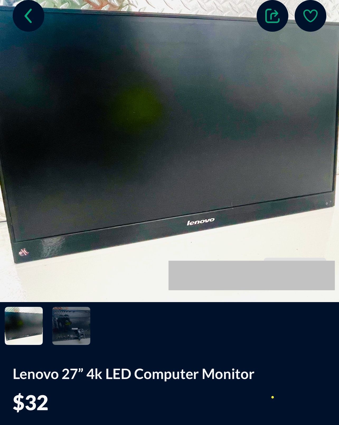 Computer Monitor Lenovo 27”