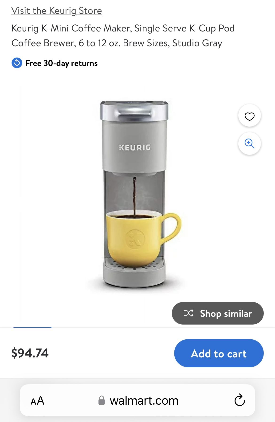 Gray and less than 5 inches wide. Fits anywhere. Brews any cup size between 6-12 ounces. Bought for office and used about 3 times. In very good condition. Paid $94 asking $35.