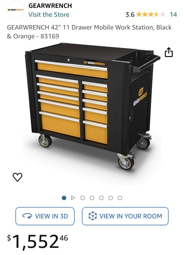 GEARWRENCH 42" 11 Drawer Mobile Work Station, Black & Orange - 83169 GEARWRENCH Estación de trabajo móvil de 42" y 11 cajones, negro y naranja - 83169