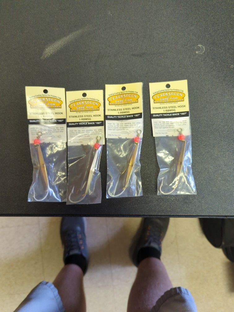 Golden spoon with red bead. Great for trolling! Size: 1RBMSG $5 each ASK ABOUT ALL YOUR HUNTING AND FISHING NEEDS!