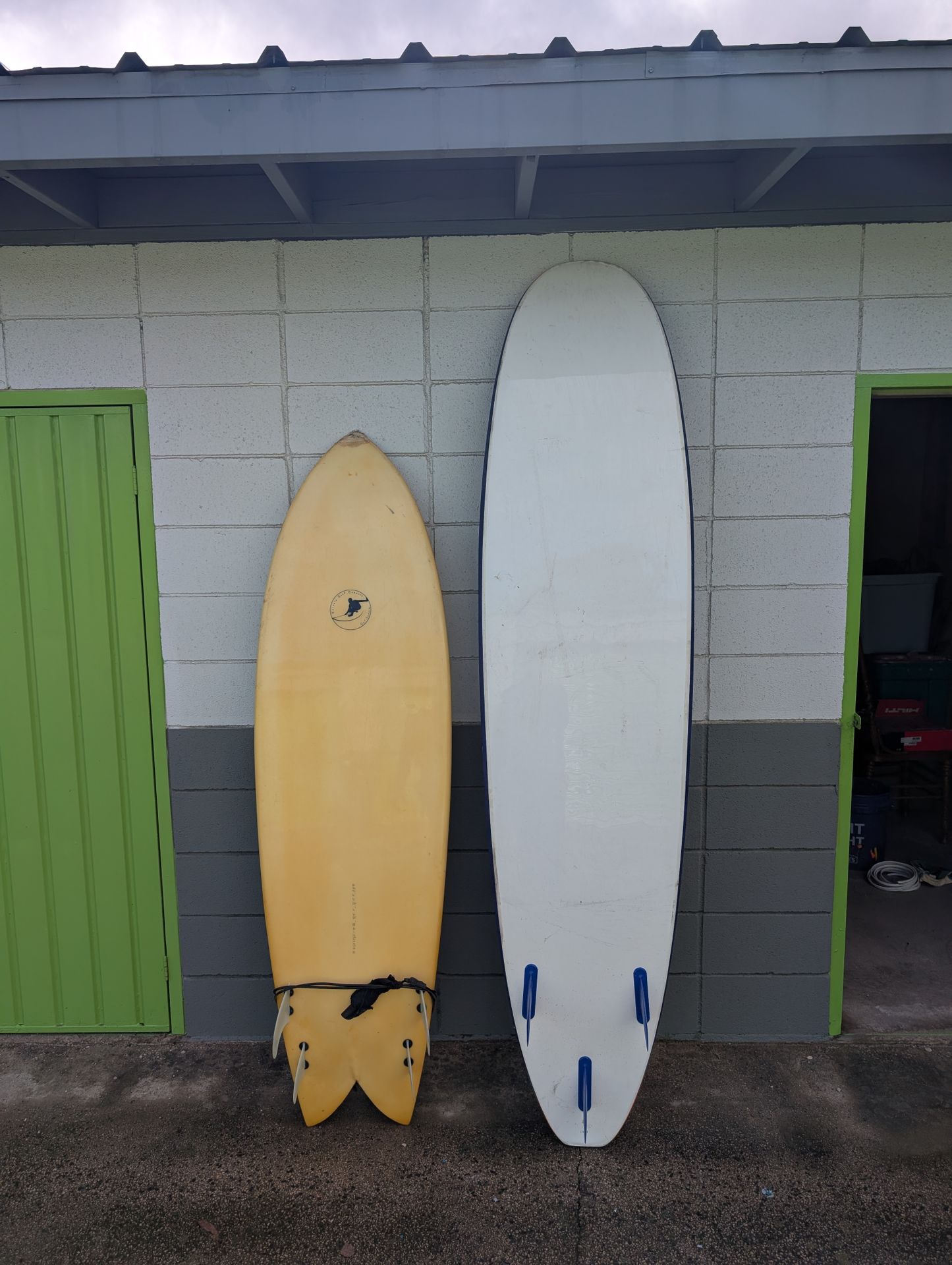 1-6'x6" 4 fin surfboard and leash 1-8' soft top surfboard Located in lake Elsinore I have leash for soft top too