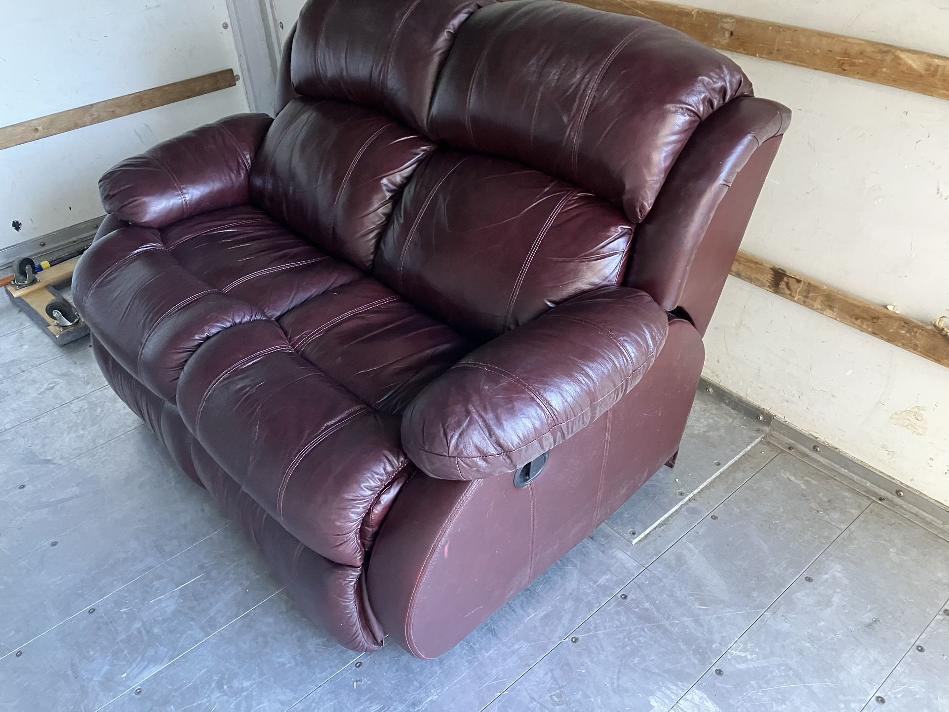 Excellent condition recliner red maroon leather couch . MUST GO $200.00 OBO
