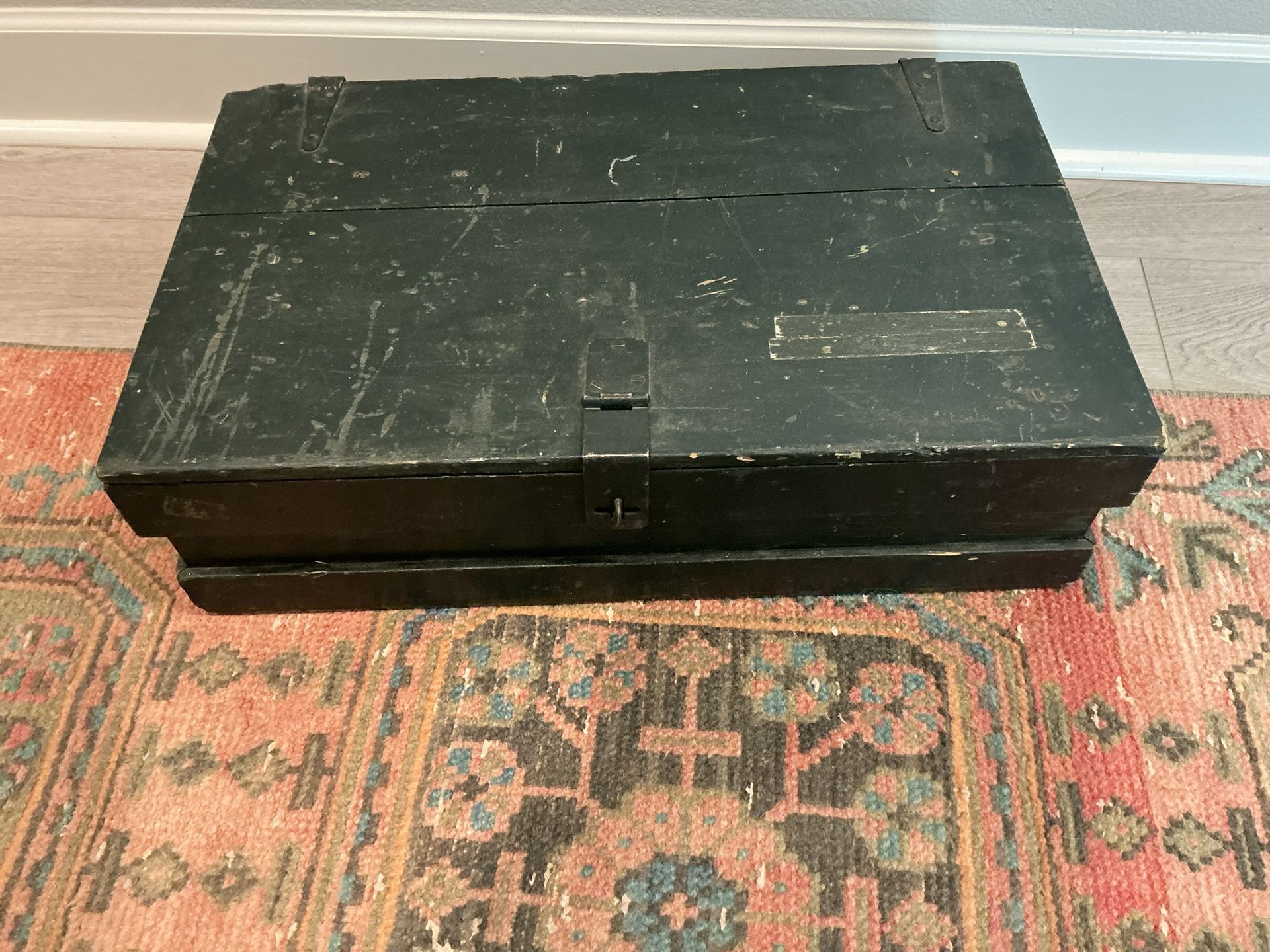 Sturdy black wooden box with latch. 24.25” x 14.75” x 6.5”