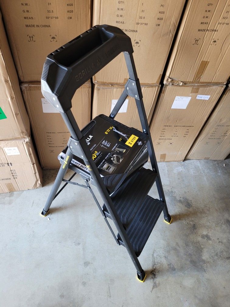 3-Step Pro-Grade Steel Step Stool, 300 lbs. Load Capacity Gorilla Ladder Type IA Duty Rating (9ft. Reach Height)