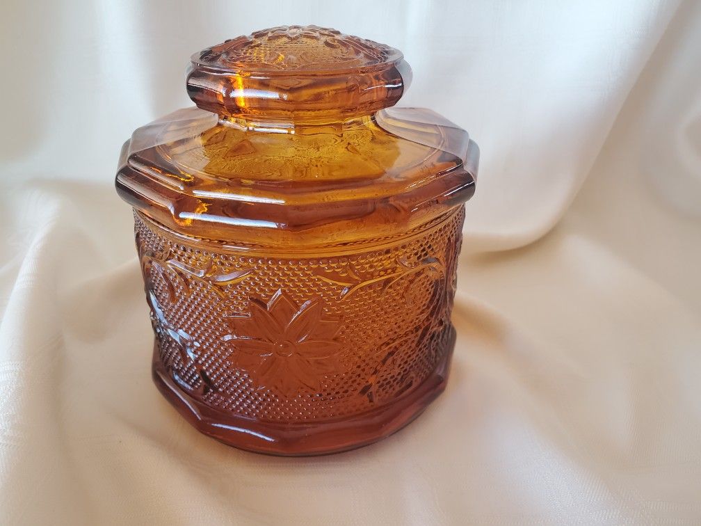 Tiara Indiana Amber Glass Biscuit Canister Cookie Jar Vintage Kitchen