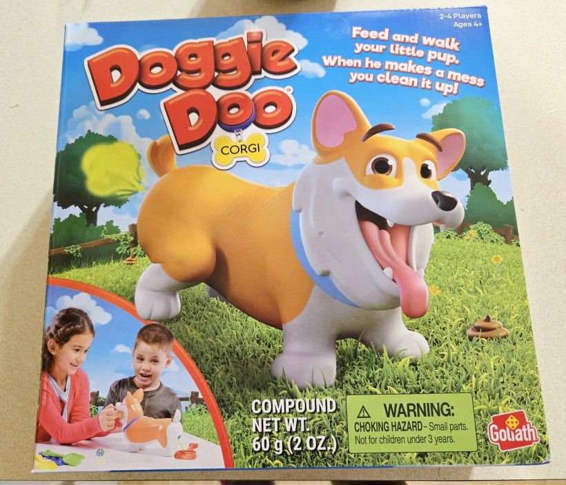 New in box Doggie Doo, the YouTube sensation, is back with a new Corgi friend! Feed your Corgi, and squeeze the turkey bone...and hear the sounds! Ewww! Squeeze the turkey bone until he does what doggies do! Be the player with the most doos collected when the food is gone to win! For 2-4 players, ages 4 and up Pick-up in Appleton/Combined Locks area