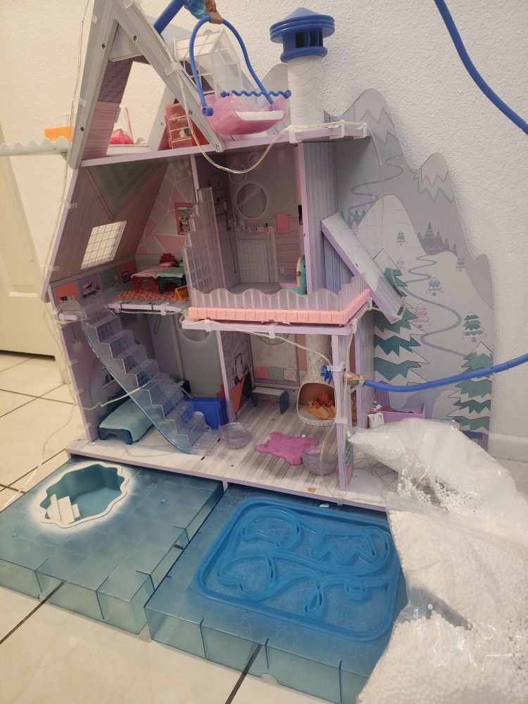 May be missing some items. Have unopened snow still available that came with it. No dolls included. Lights up. Pick up only.