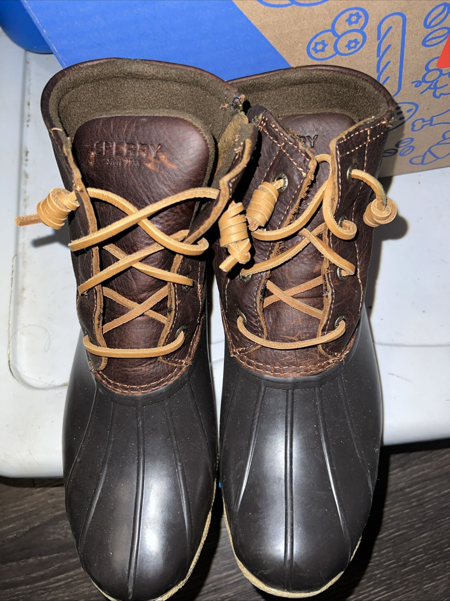 Sperry Womens Duck Boot Sz 8.5 Waterproof Leather Rubber Brown / Brown Side Zip