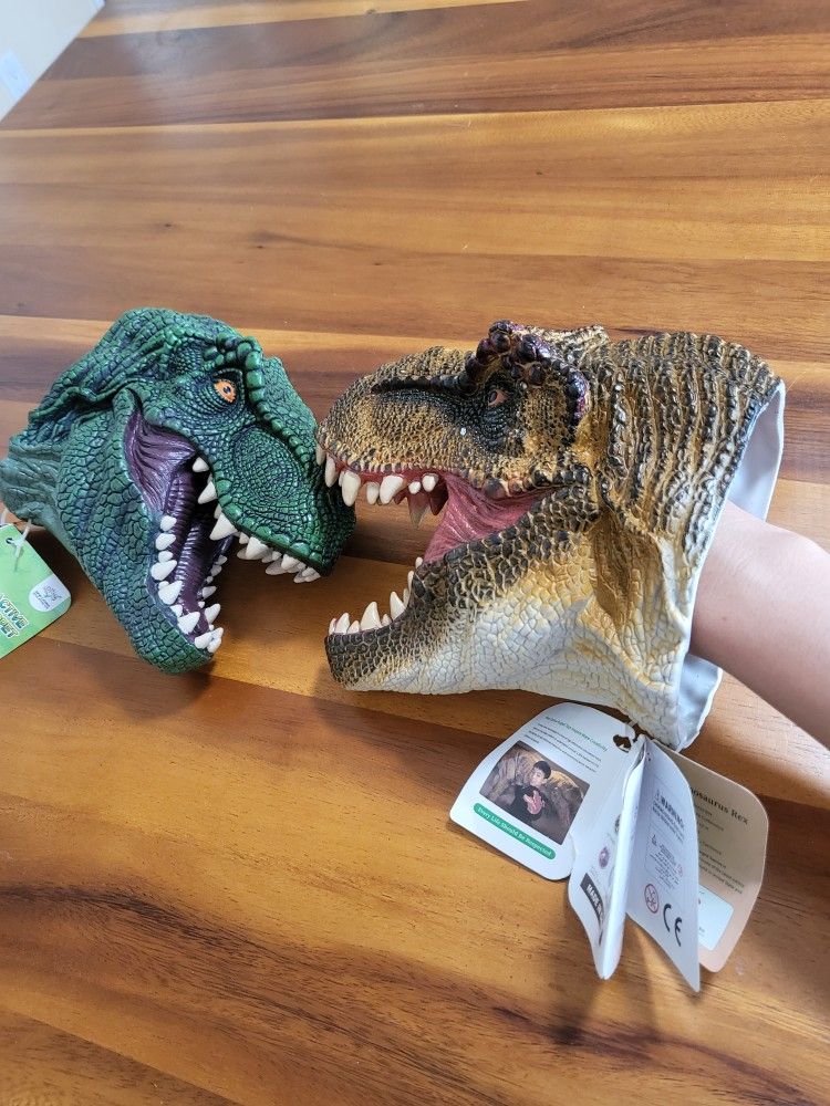 Dinosaur Hand Puppets Rubber Toys,Halloween. Set of 3 and set of 2 .