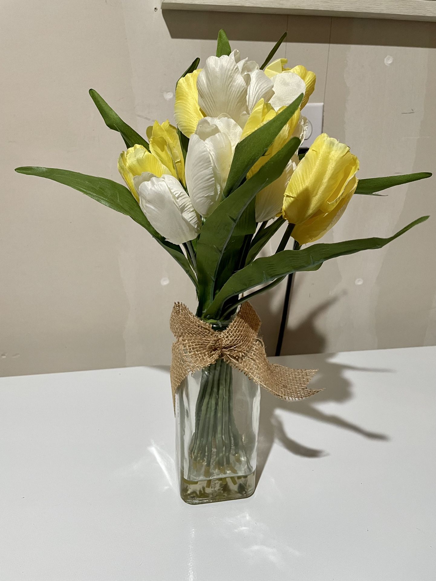 Artificial Silk Tulips Flowers In Vase for Home Kitchen Wedding Decorations. * Candle Holder is not included.