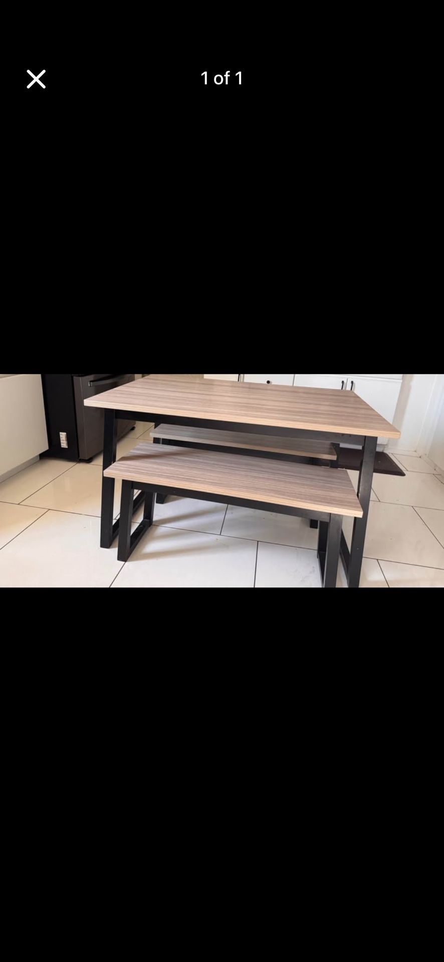 Bench dinning table , has minor scratches on table legs from the benches . needing gone ASAP