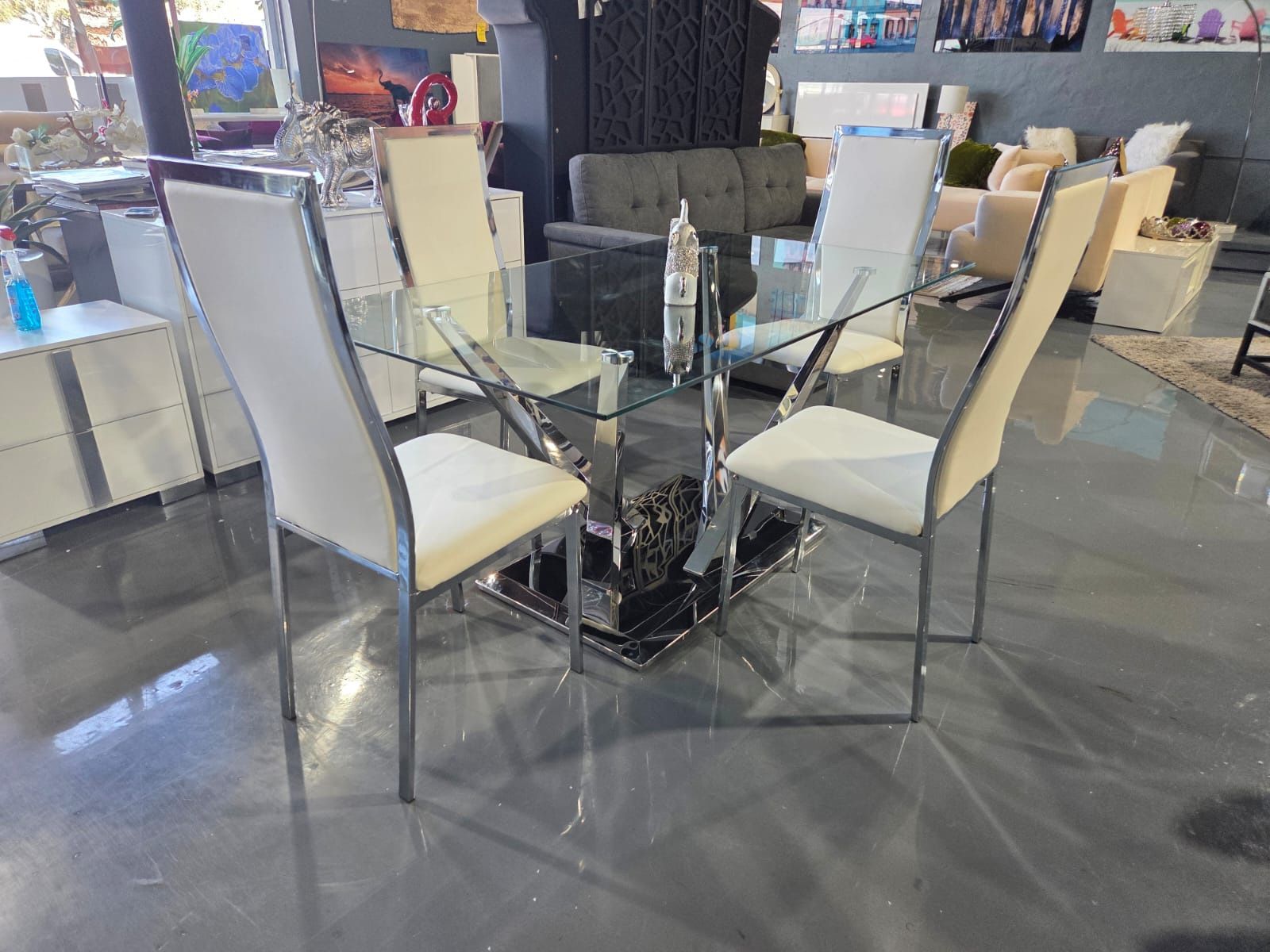 5 PIECE DINING TABLE SET DINING TABLE 63" Rectangle Tempered Glass Table Top and Stainless Steel Base