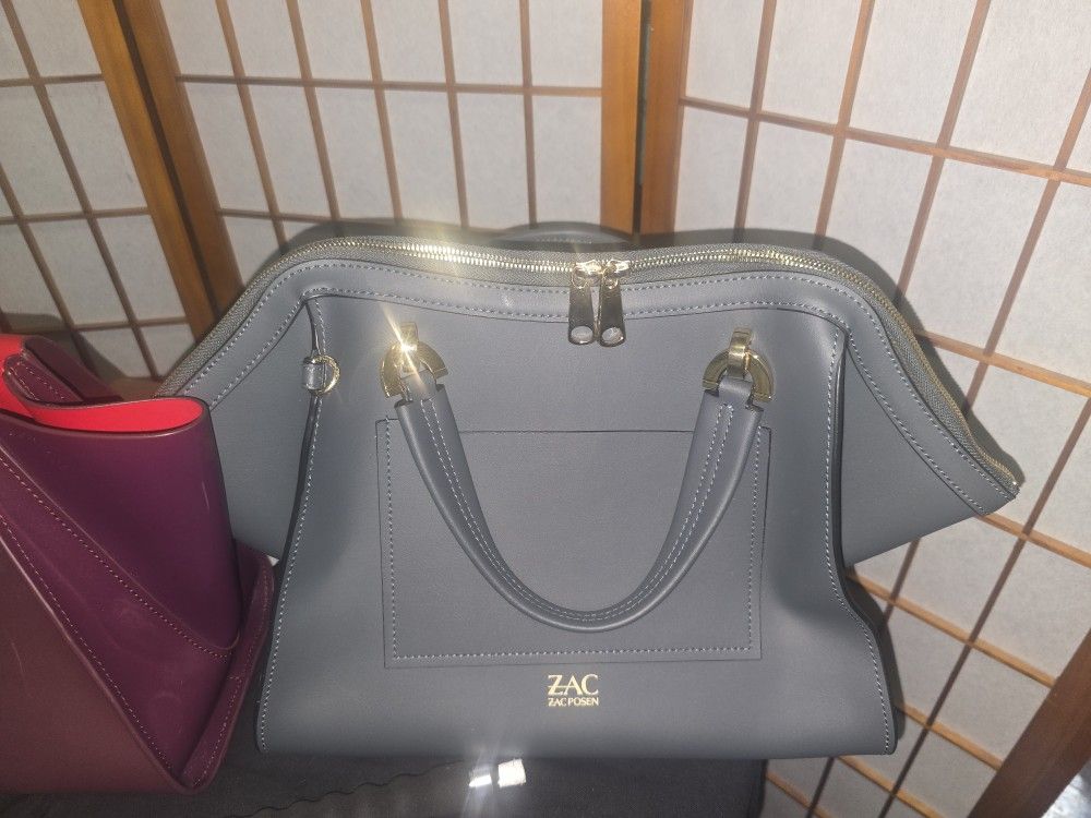 Beautiful GRAY handbag. Top zipper closure. Double handle , interior pockets, Gold hardware.Price negotiable..
