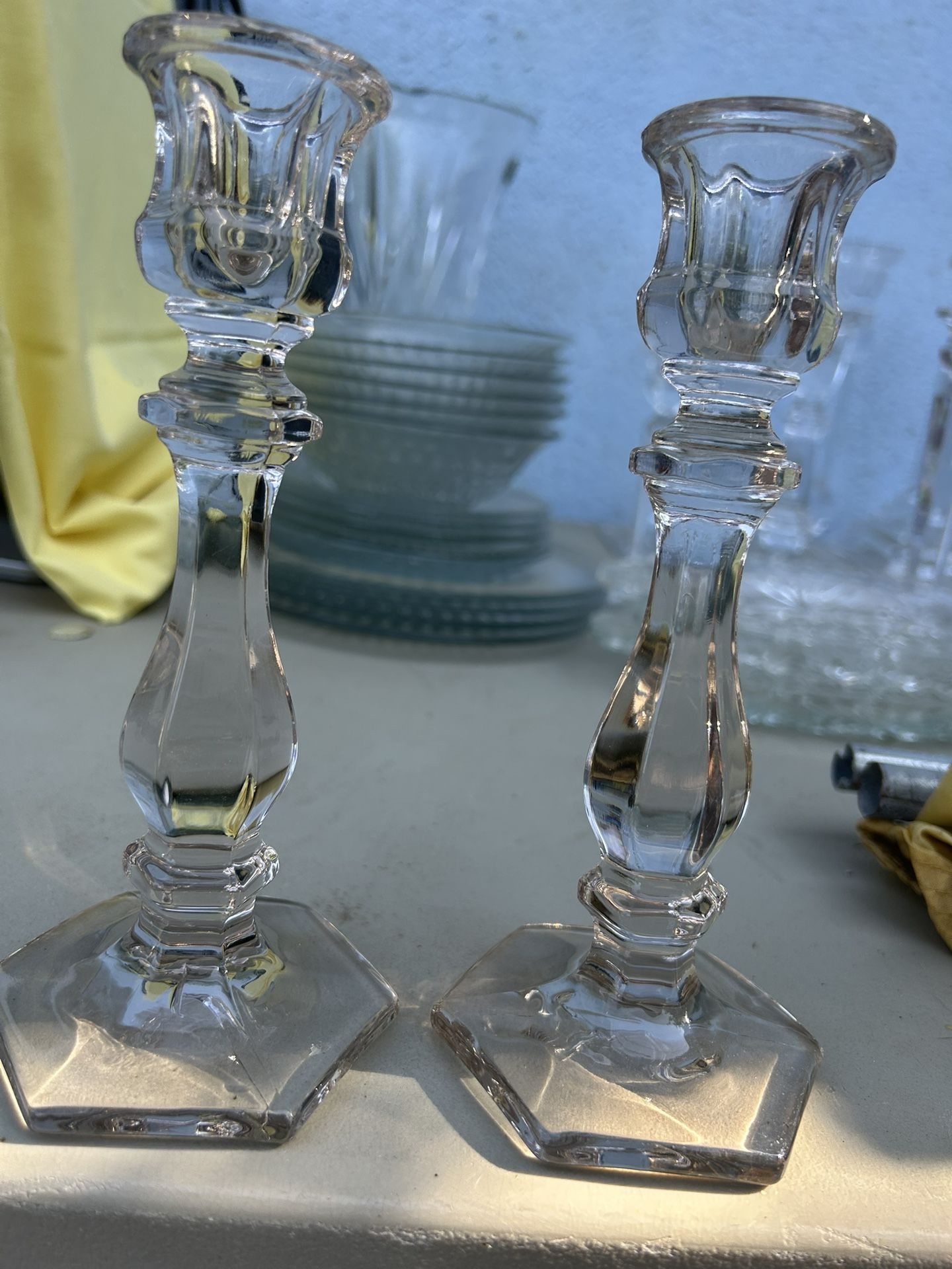 No chips cracks or scratches. Both are a very slight pink color from a previous owner putting them in the sun. Not noticeable indoors.