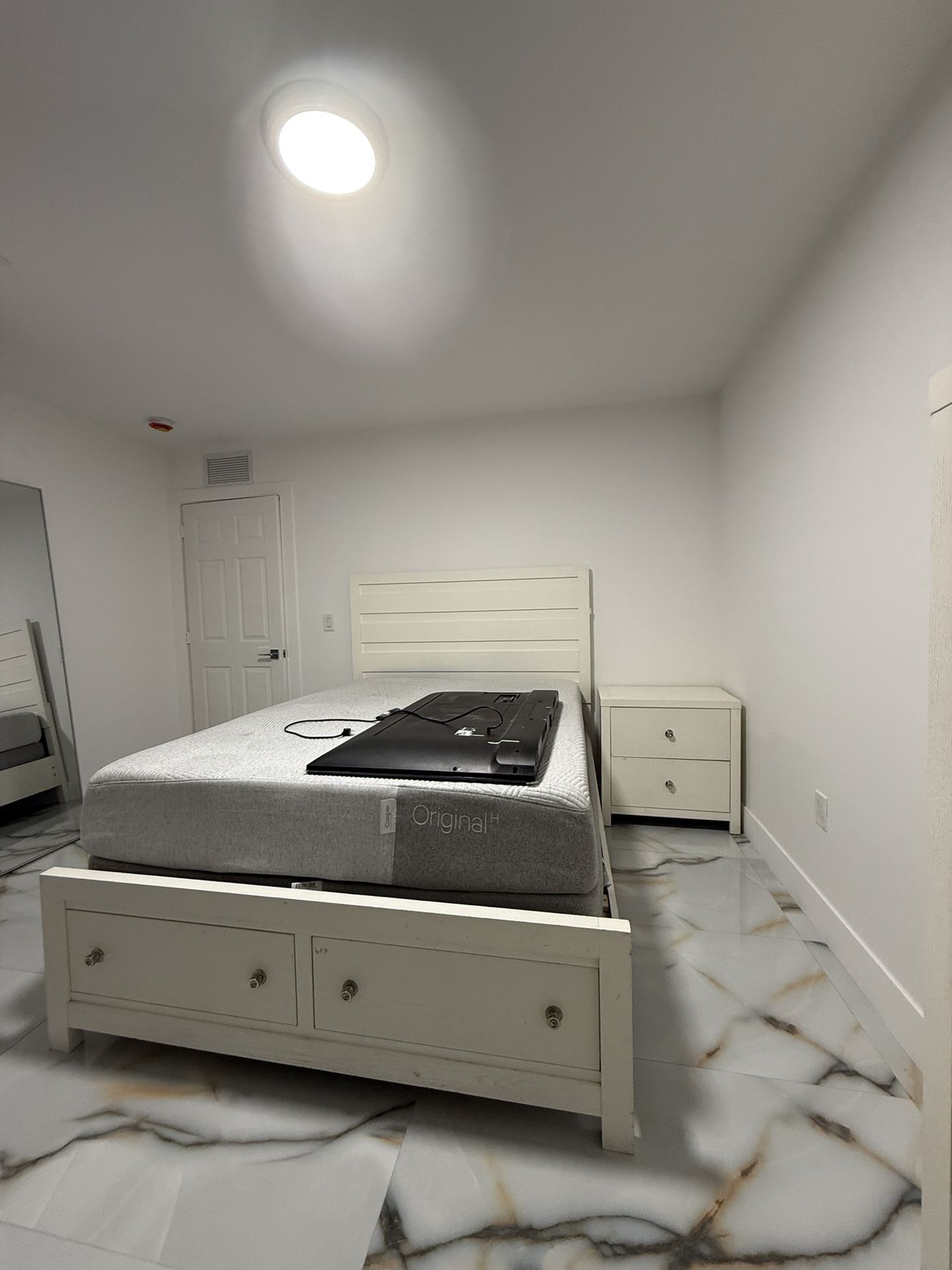 Includes Queen Mattress frame Queen mattress 1 night stand 1 chest