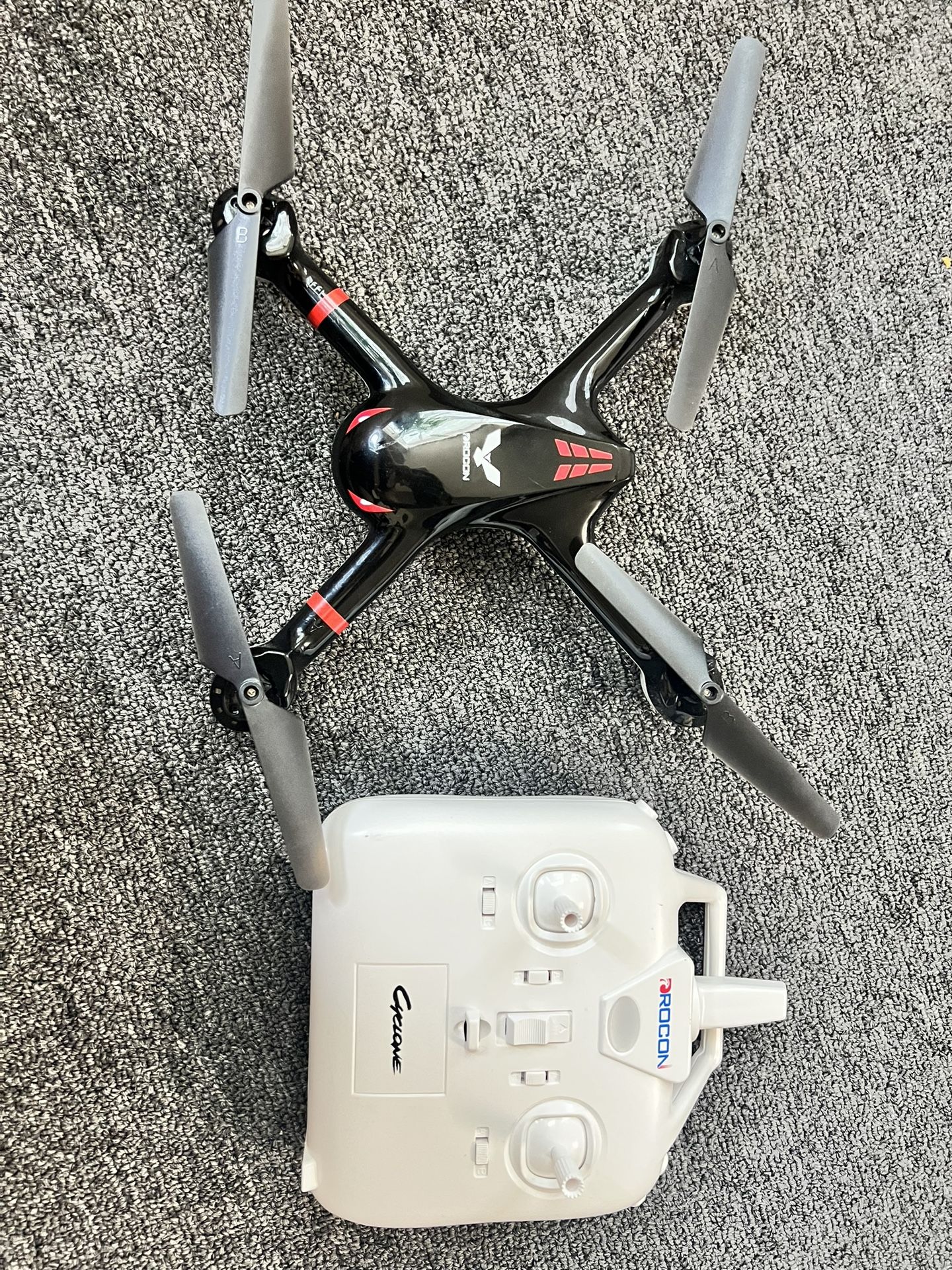DROCON Drone for Beginners X708W Wi-Fi FPV Training Quadcopter with HD Camera What's in the package? 1×Cyclone X708W Quadcopter 1×Controller 1×Phone Holder 1×USB Charger 1x Product Manual 4×Propeller Protector (4pcs/1 set) 4×Spare Propellers (4pcs/1 set) Retail price is $65. Was only used once. $40 or make me an offer. PICK-UP ONLY
