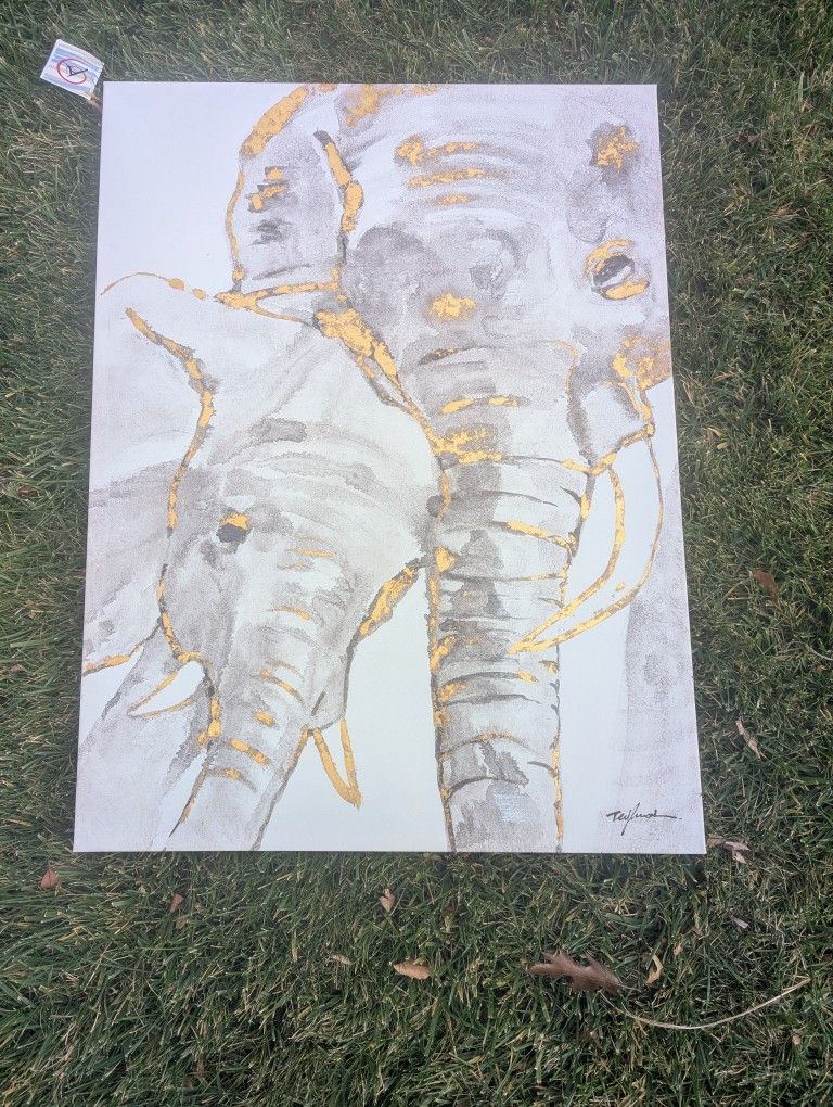 Measures 30" x 40" total 1" wood frame Stunning picture White background, grey painting with gold foil accents