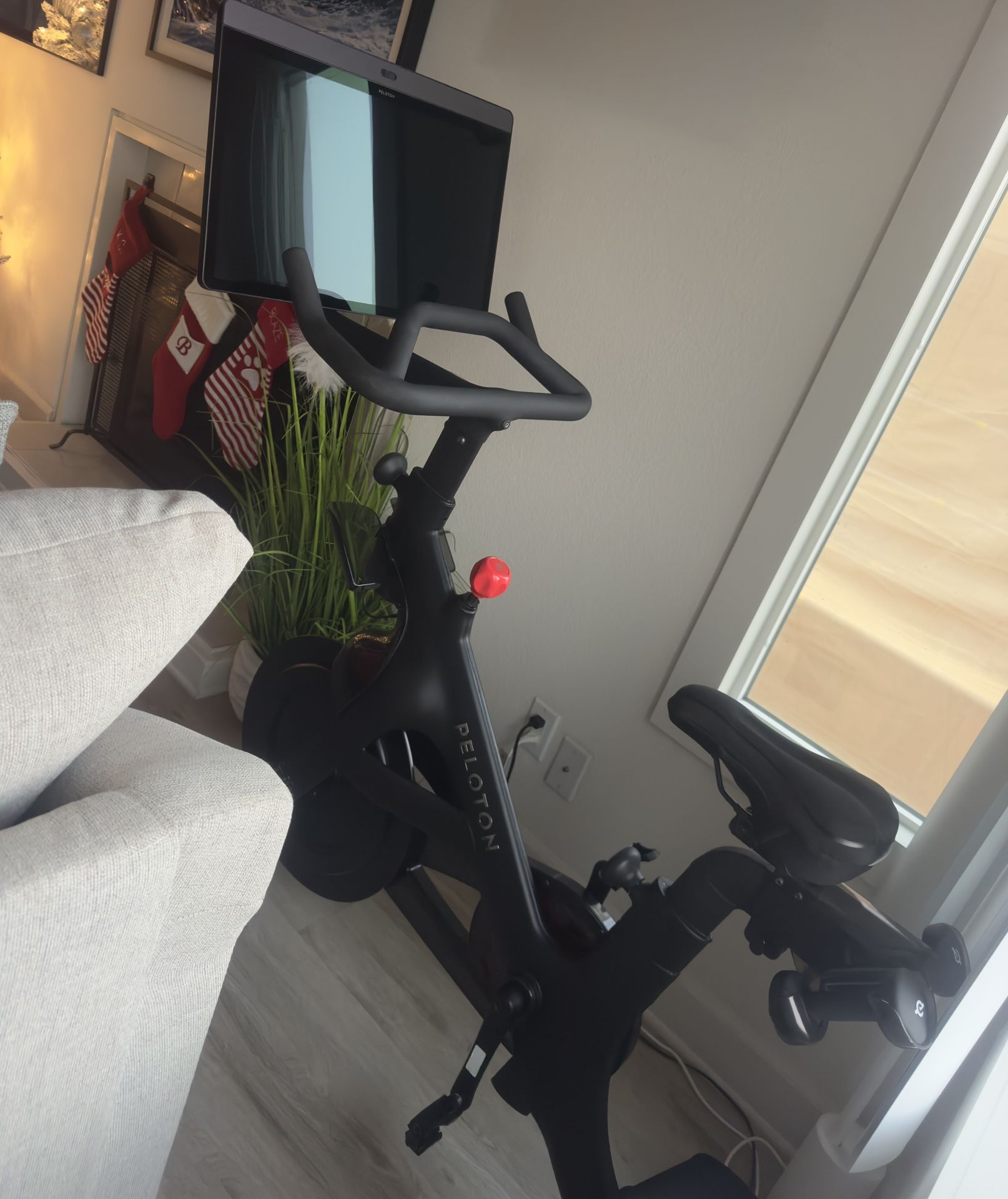 Used 5 times, in great condition, and is perfect for cardio and reaching your fitness goals. Built in videos for newcomers that want to do cycling classes online, yoga, boot camp etc. with a big variety of options and levels.