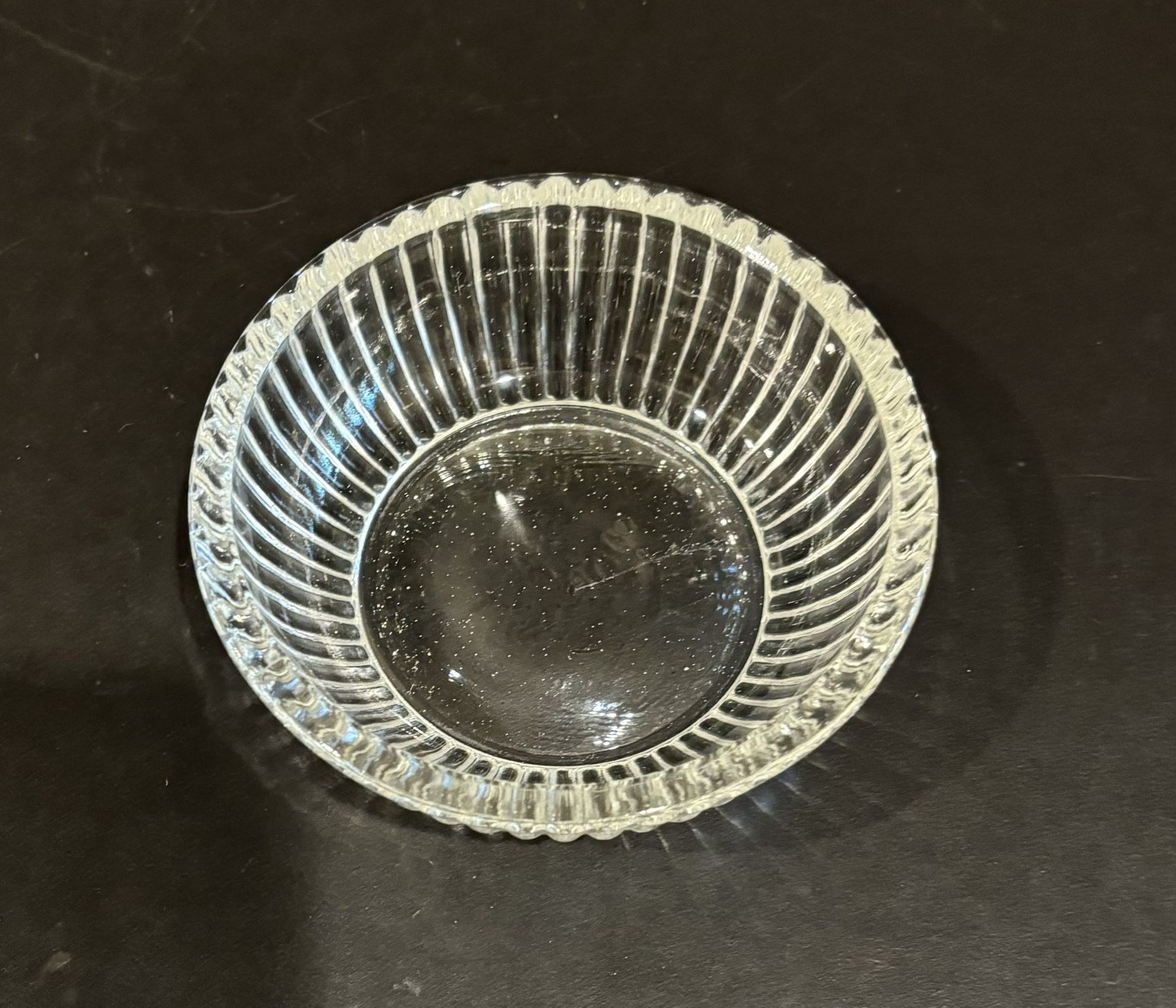This crystal glass candy dish from Fostoria ‘Heritage’ product line is a true gem. Measuring 5.75” in diameter and 2” deep. It’s clear glass makes it a versatile piece that can complement any style decor. Item is gently used in like new condition with no chips, cracks or damage.