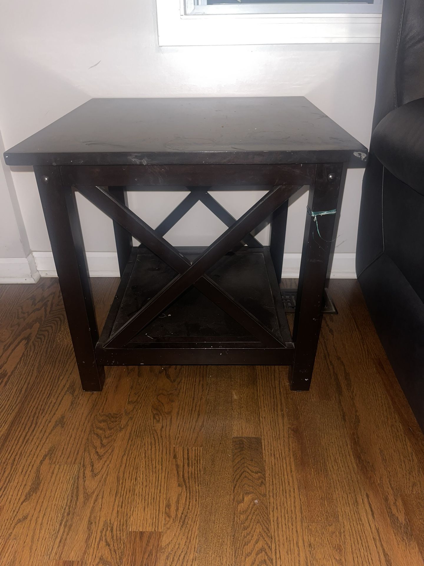2 Dark brown side table needs a clean Pick up only, no longer need them. Both for 50$