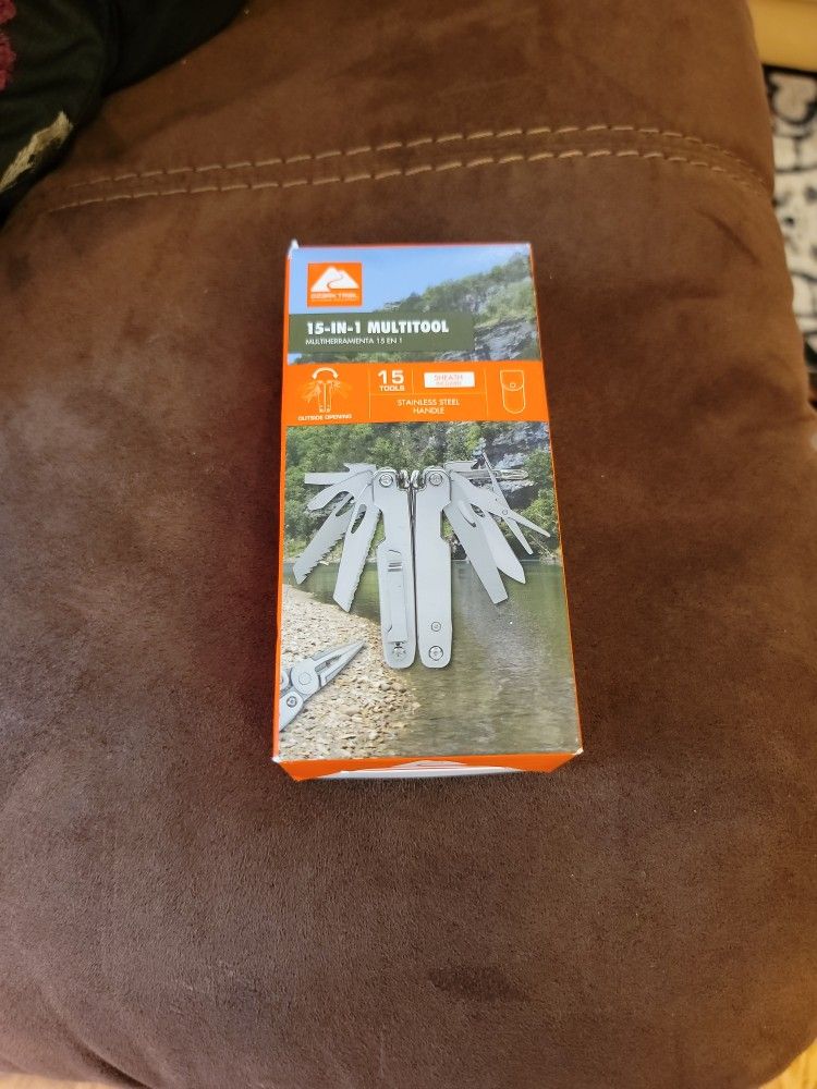 Brand new. Stainless Steel 15-In-1 Multi Tool. Outside opening design. Sheath unlocked.