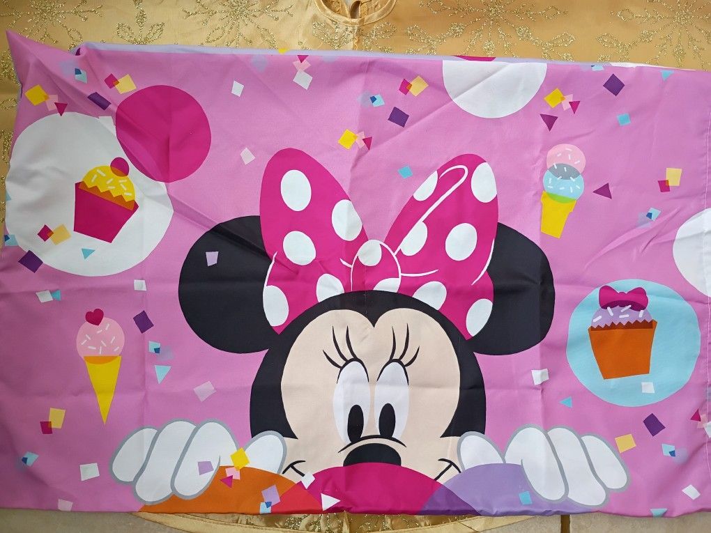 Reversible Pillowcase - Standard Size, Excellent Condition! ✨ One side: Fun lavender background with Minnie. ✨ Reverse side: Vibrant pink with Minnie peeking up playfully, surrounded by cupcakes, ice cream, balloons, and confetti. ✨Standard size: Fits 20" x 30" pillow perfectly. Must pick up near Walmart