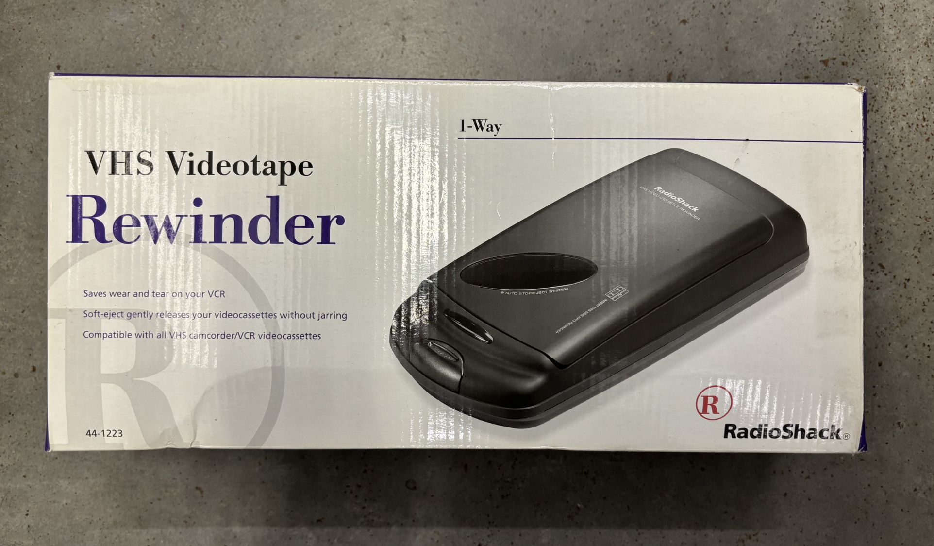 Inbox never used brand new VHS videotape rewinder from RadioShack. 1 way auto power off. Located at Storquest Self Storage 5890 S 129th St Seattle, WA 98178