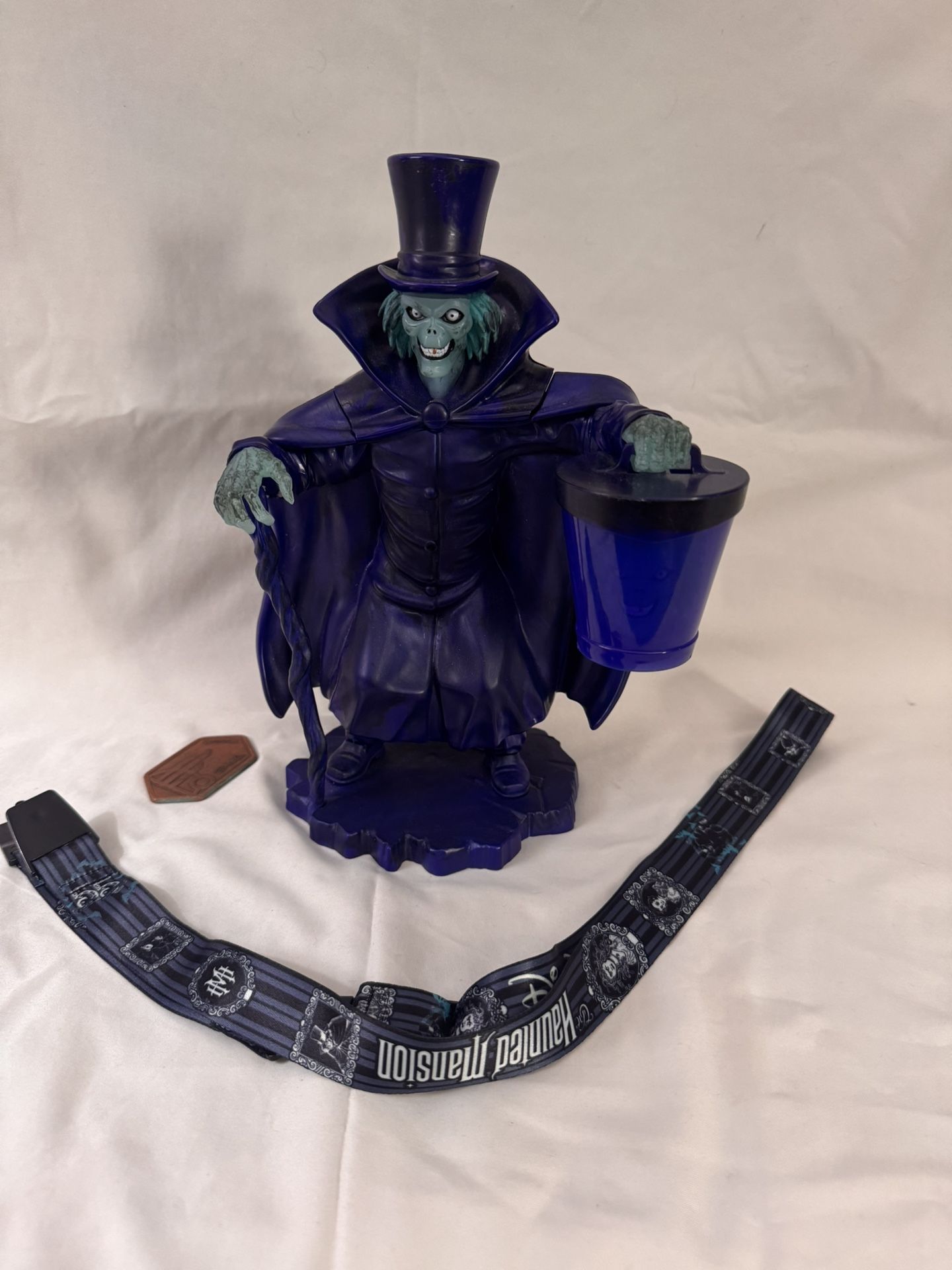 $60 OBO, New and unused Disneyland Haunted Mansion sipper of the Hatbox Ghost. Lanyard included, fully functional light effects.