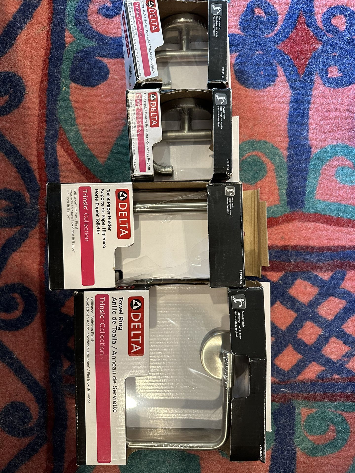Delta Trinsic Towel Ring, Toilet Paper Holder, 2x Robe Hook (Brilliance Stainless Finish)