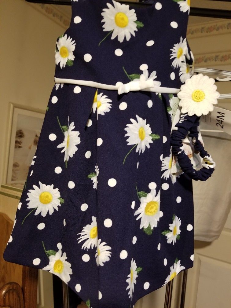 Adorable navy with white daisies 24m sundress . Has headband . Originally $44