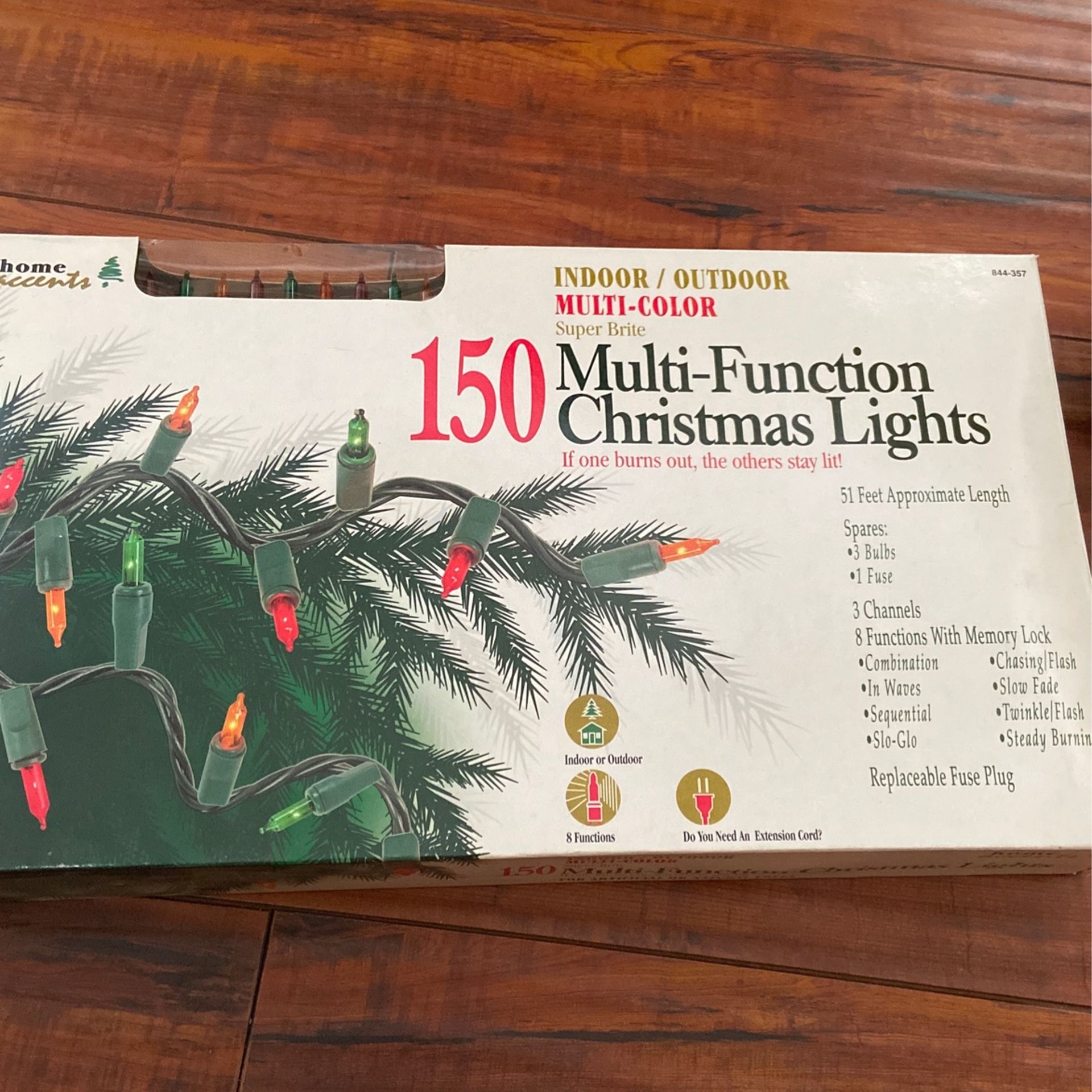 4 brand new in box light strands Stay lit technology, one bad bulb doesnt ruin strand 3 color red green gold 51 feet length Multi-function settings 7 each, all for 20 Pick 15 frwy at Clinton Keith Trades considered