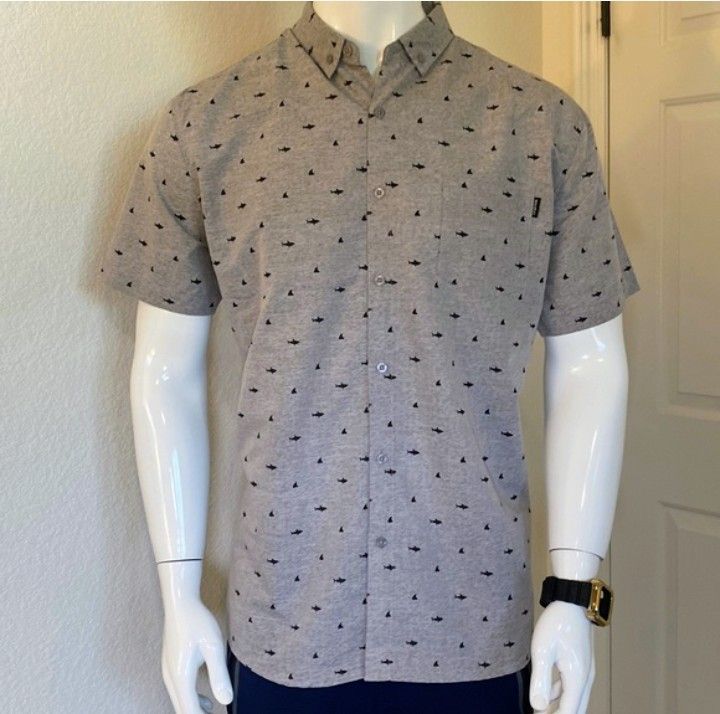 Molokai boys' short sleeve shirts They are perfect for any occasion, whether it's a casual day or a fun night out with friends. Each shirt features a chest pocket, a smart 2-button collar, and 7 front buttons for a polished look. Designed with busy parents in mind, these shirts are easy to care for with machine washable fabric. I have 2 shirts. One pattern is of red & blue fish. The second pattern is of red & blue mustaches. Size: Both Large Original Retail Price: $27.99