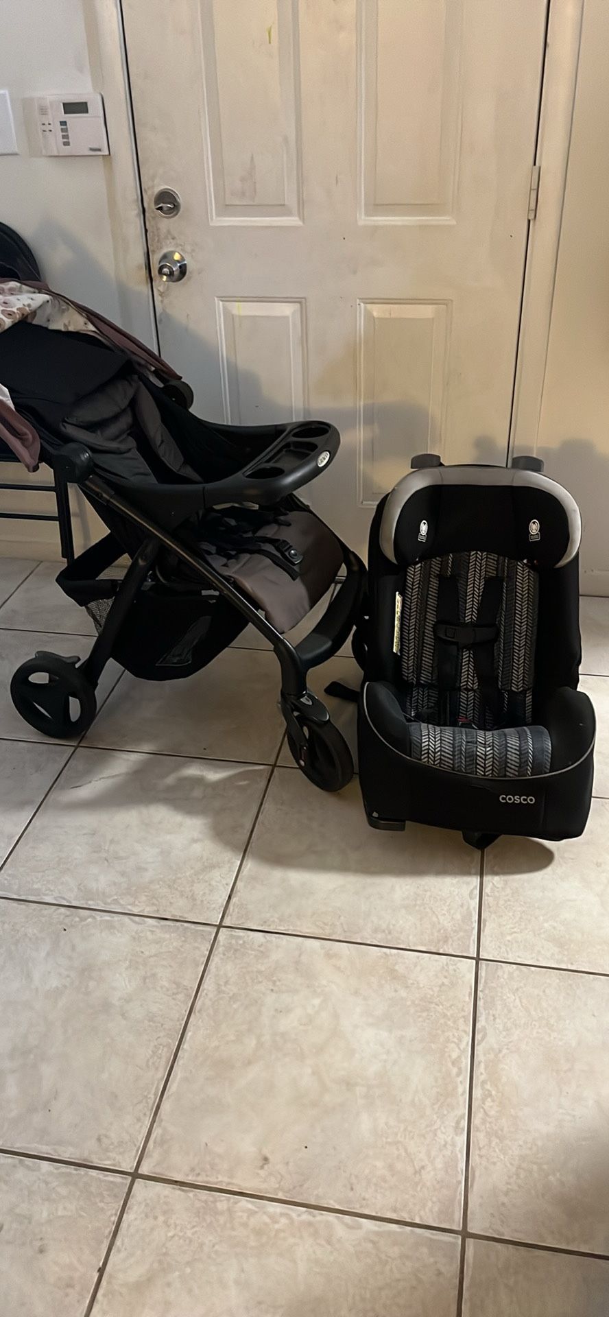 Baby stroller and car seat. My daughter too big for them and just want to make back something. No they do not attach but can be sold together