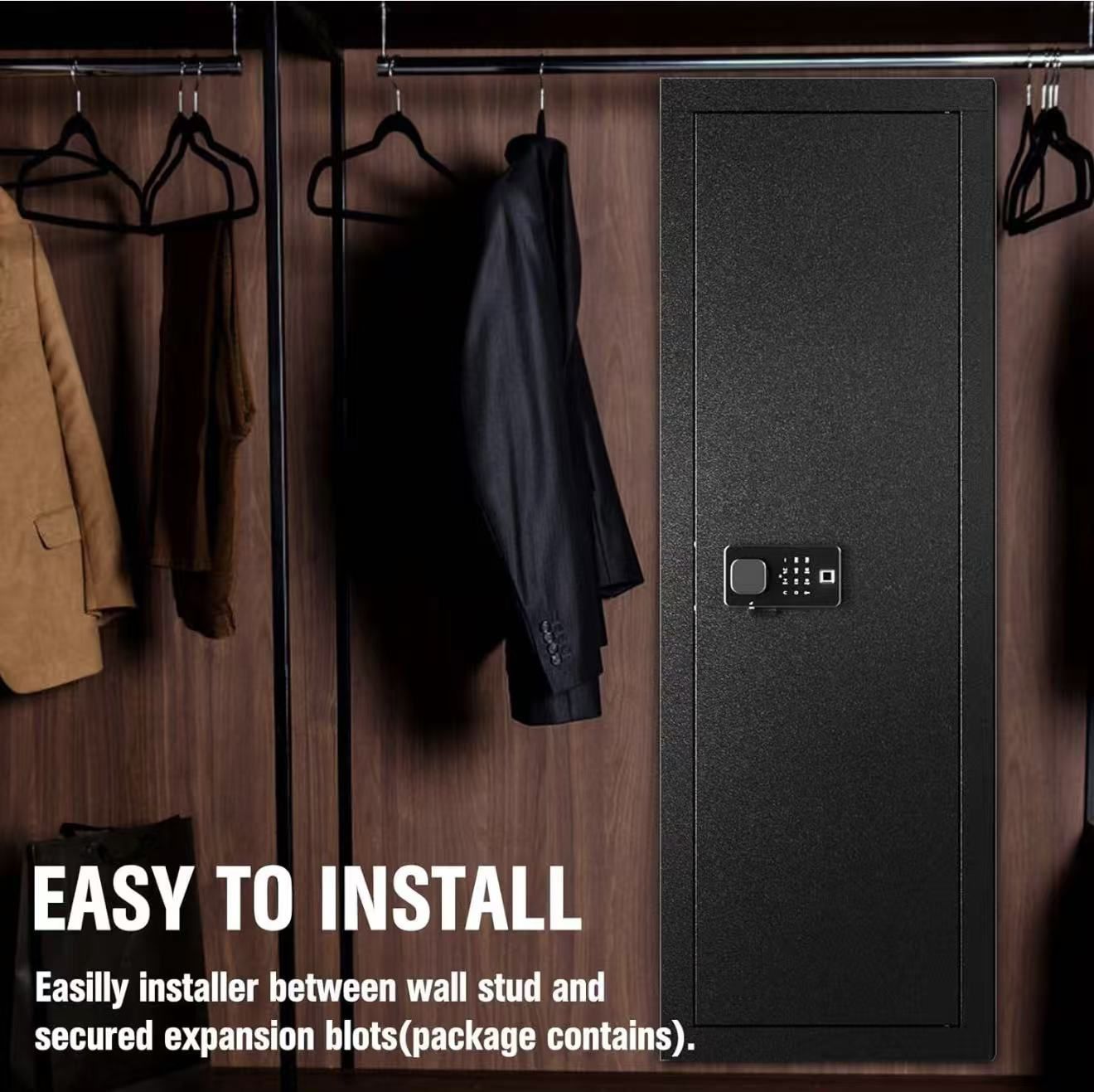 53x18 Wall Safes Between Stud with Fingerprint Lock,Assembled Safe with 3 Removable Shelf, black $130