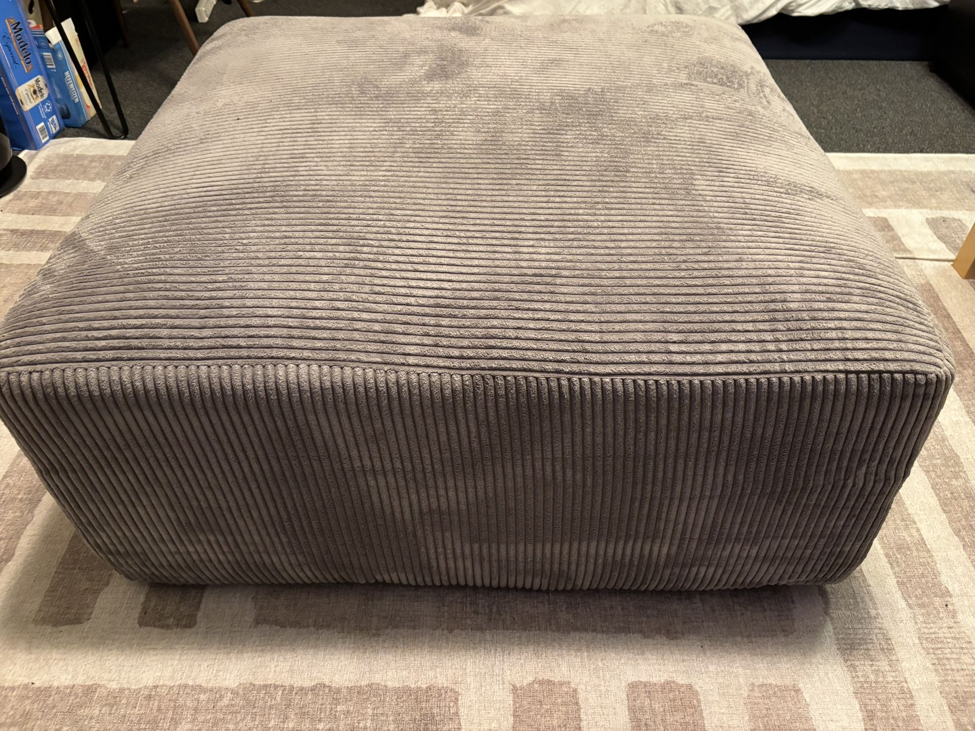 113" Modular Sectional Couch, Cloud Boneless Sofa with Deep Seats, Upholstered Corduroy Square Stuffed Ottoman Pouf, 40 * 40 Inch Furry & Fluffy Movable Foot Stool for Living Room, Grey Purchased in October, but don’t need anymore. No blemishes at all - hardly used.