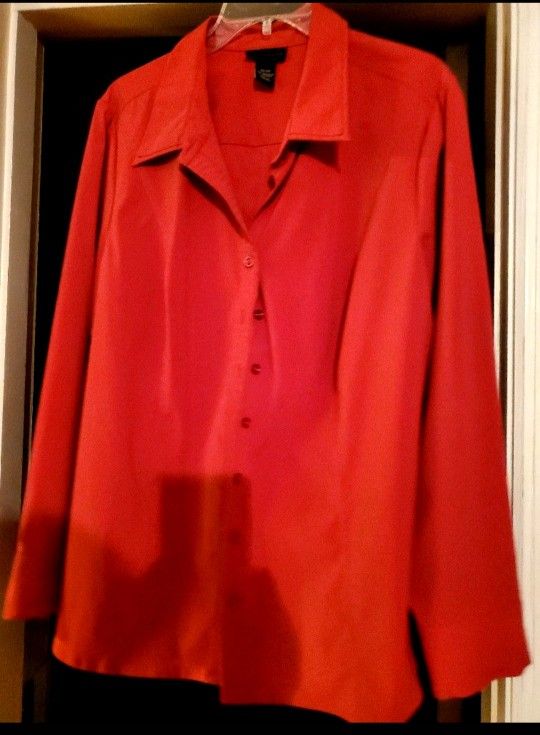 Red Long Sleeve Button Down Blouse 22/24