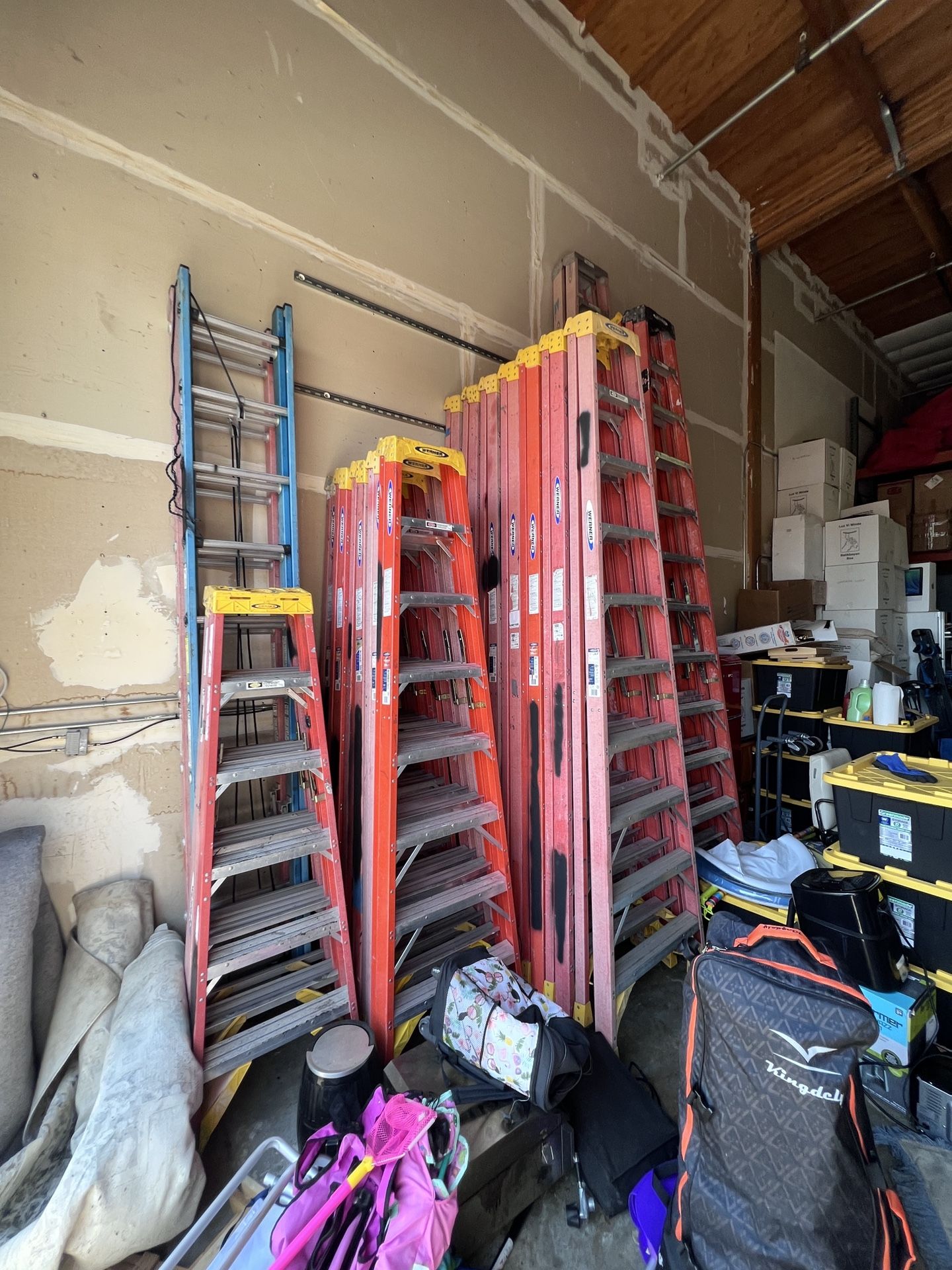 1-14ft:$355 3-12ft:$130 7-10ft:$120 5-8ft:$110 2-6ft:$80 2-20ft straight extending ladder:$120 Or $2000 for all Can deliver with an extra cost