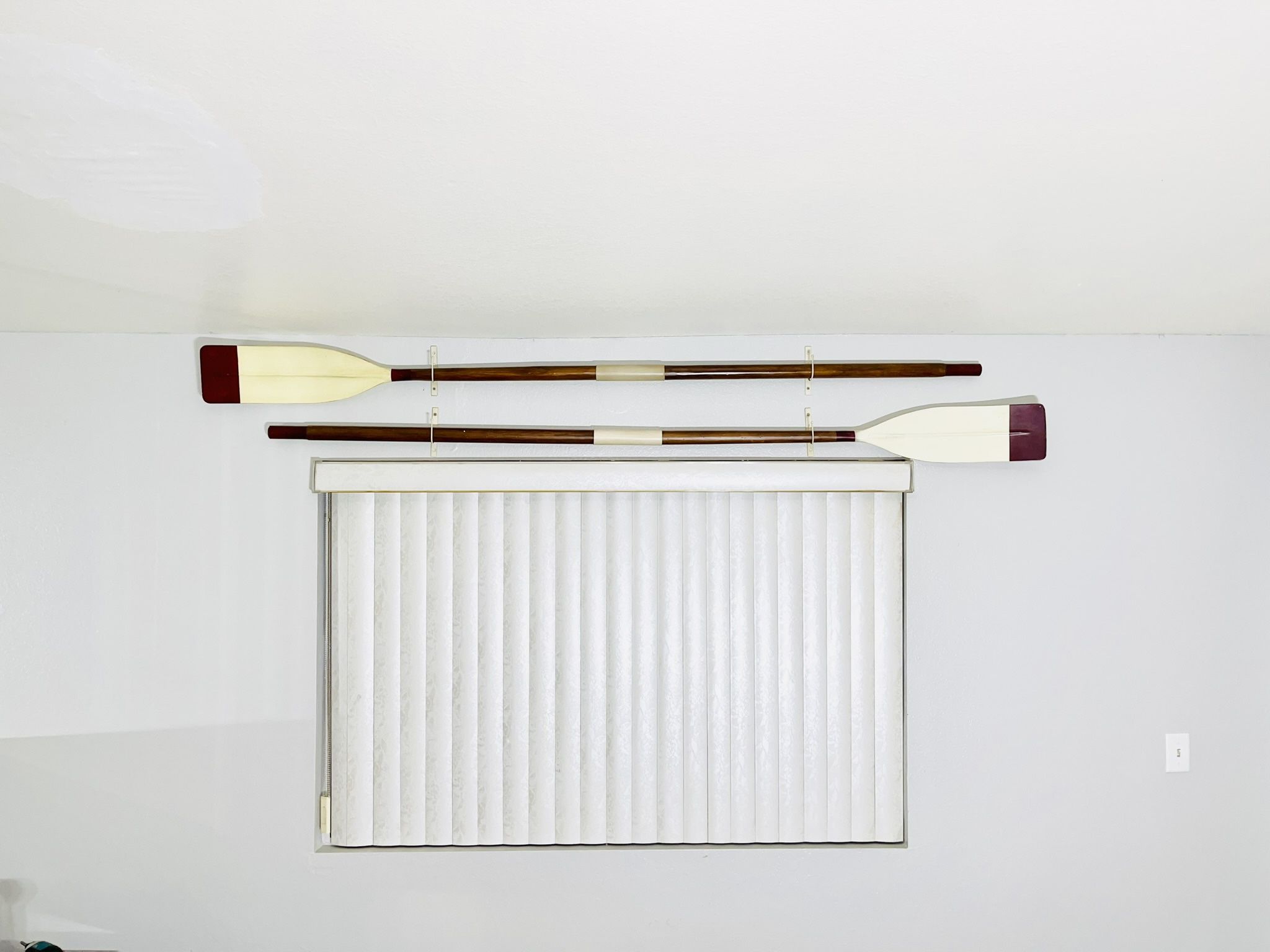 $100 for a pair displays two decorative oars, Oxford Varsity Rowing Boat Oar 93" w/ Hooks Decorative Wood Nautical Wall Decor