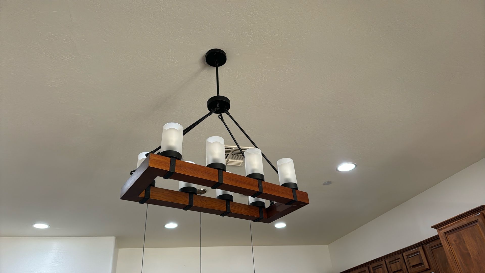 Industrial 8 Bulb Light Fixture/ Wood And Metal