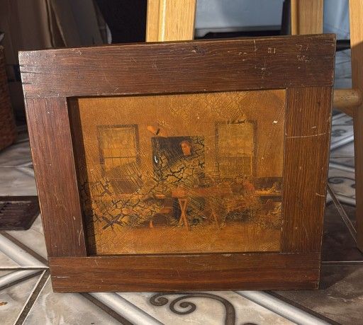 Antique Painting with Wooden Frame - Classic Interior Scene. 13x11