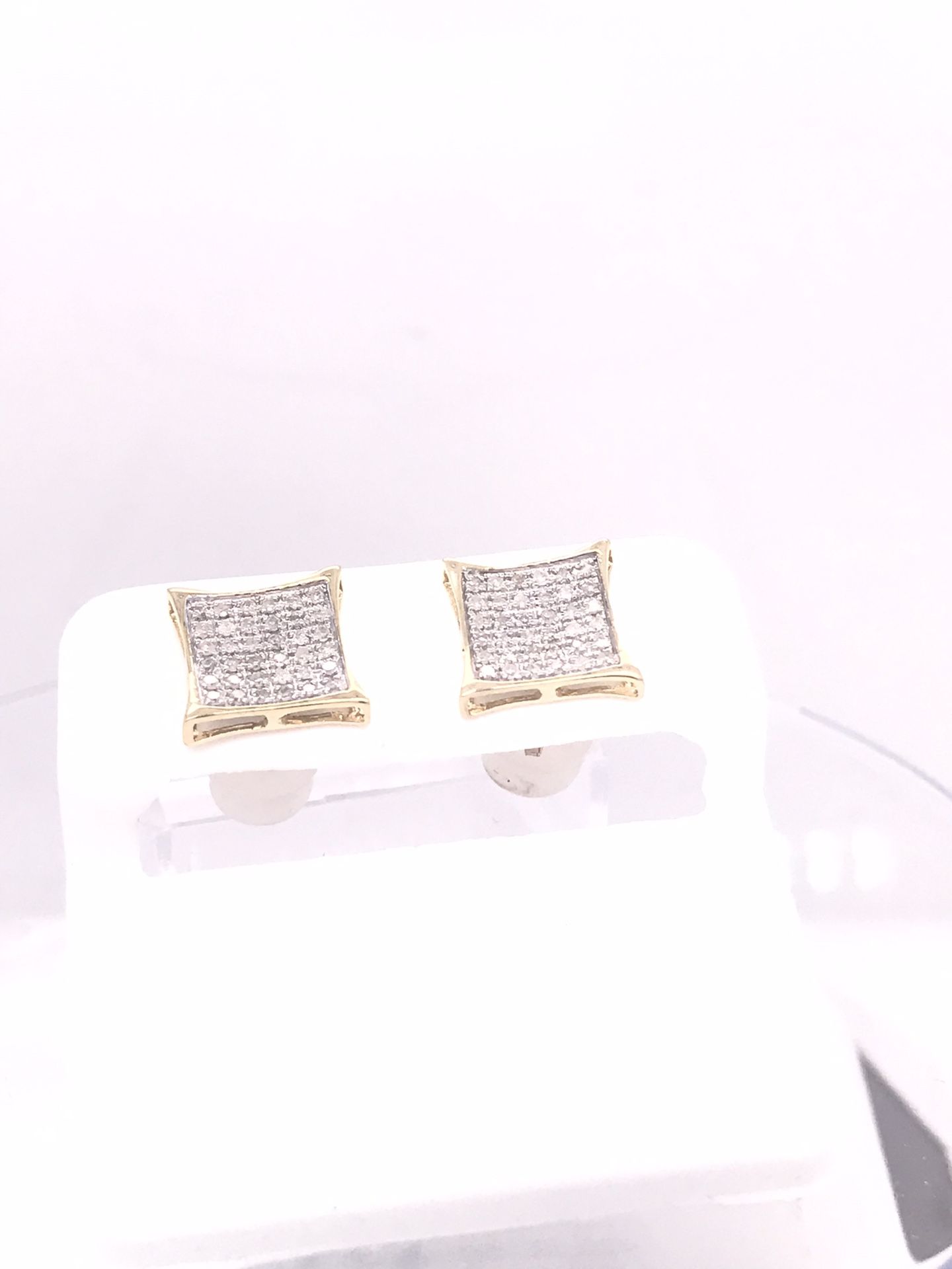 New 10K Solid Gold Diamond Square Earrings 0.25 Carat Diamonds Screw Back 10K