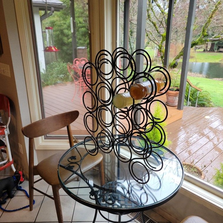 Wine rack that holds 16. Surprisingly solid, weighs 20-25 pounds.