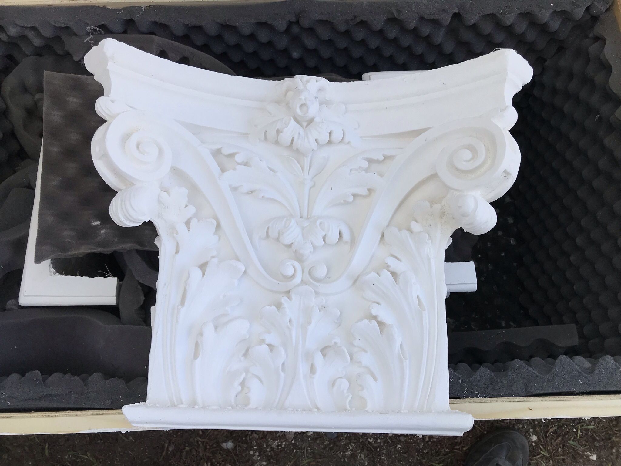 DETAILS (x4) Caps Brockwell's decorative plaster capitals are carefully cast with architectural authenticity in mind. We first partially fill our molds with a premium plaster, leaving a little room for water, as well as, our natural hemp fiber. Our hemp fibers consist of shredded ship rope, which intrinsically binds the plaster form together, and an additional layer of plaster coats the hemp fibers - essentially encapsulating the binding agents. The result is a strong, durable, clean, crisp, classically-correct capital design - which you wouldn't receive with other industry stock decorative capitals. Our decorative plaster capitals are lighter in weight than most other companies' plaster capitals, and they have the necessary strength to drill or cut in to - without compromising their high level of detail. FEATURES Architecturally correct designs Proprietary capital designs Créme de la créme for industry detail Adds classical value to your project Specify your Return (Depth) dimension Ability to create custom capital shapes Made with Natural Hemp Fiber Great cost alternative to wood capitals Can be cut, drilled in to, and glued All plaster capitals are paint-grade Meets ALL fire codes For residential & commercial projects Made with 100% natural materials