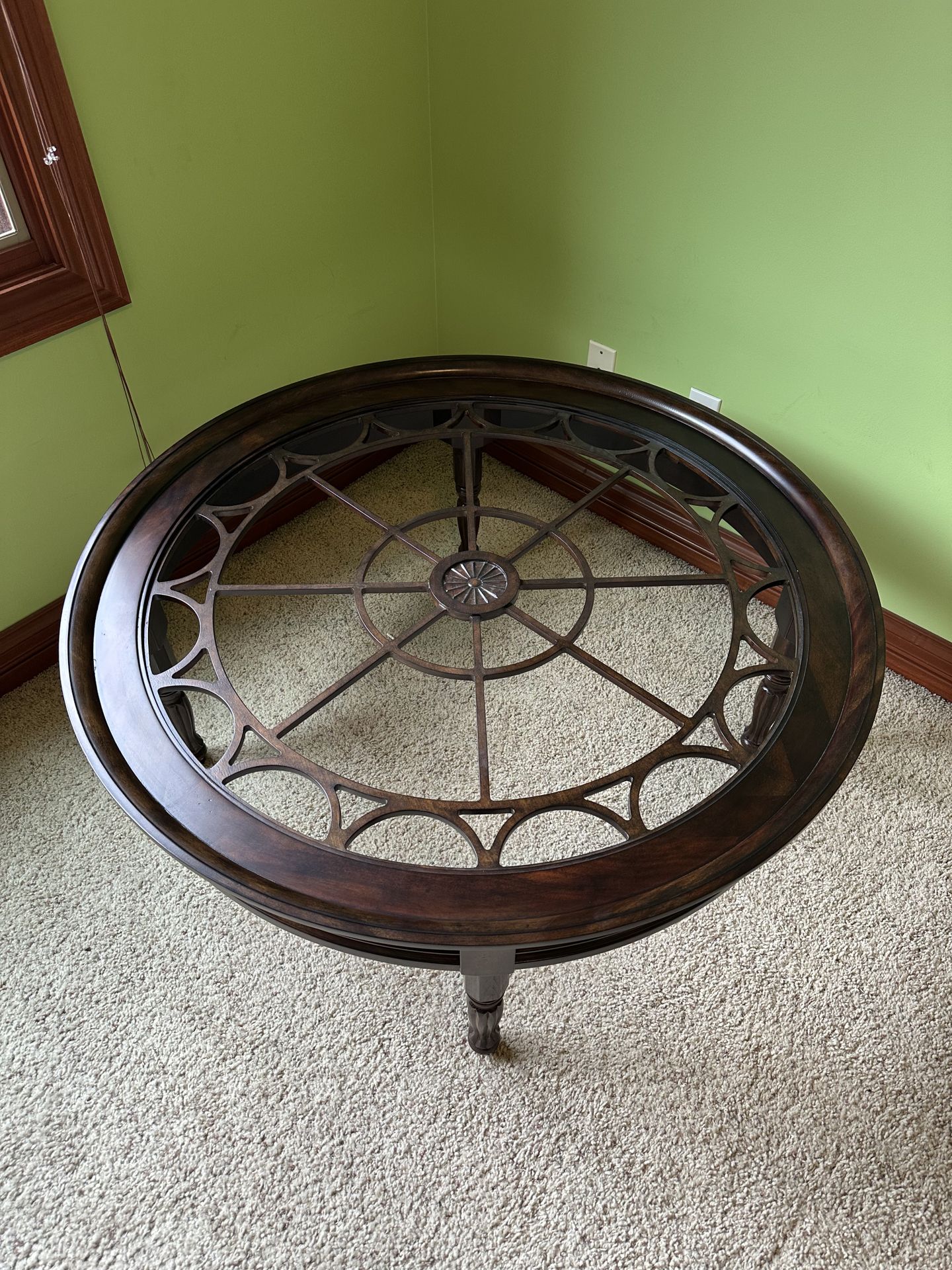 46” Kincaid solid wood coffee table. No scuffs or scratches. Needs glass top. $200 or best offer. Pickup in Middleburg Heights