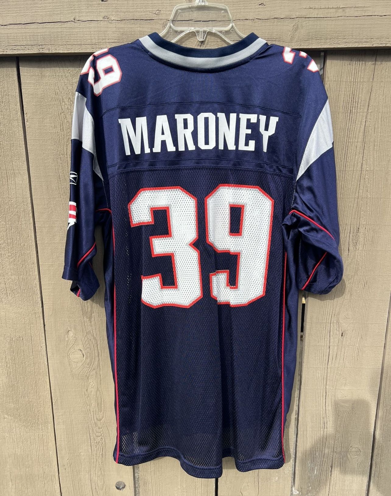 This is a Vintage Laurence Maroney New England Patriots Mens NFL Reebok Jersey Size Large. PICK UP AVAILABLE IN LA MESA OFF THE 8 & 94! No rips holes tears or stains. No peeling or chipping of the graphics numbers logos or name on the jersey. This is a MUST have if you're a fan of the New England Patriots or Laurence Maroney. Overall this jersey is in EXCELLENT CONDITION. This item comes from a smoke and pet free home. Measurements are Approximate: Underarm to Underarm - 22" Top of the shirt to the bottom of the shirt - 31"